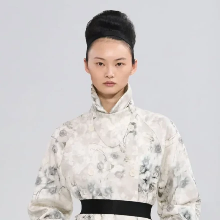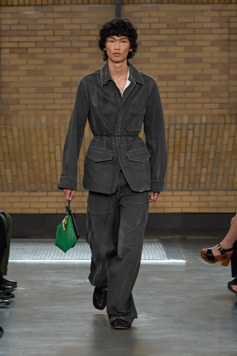 Skóra była cięta laserowo, żeby przypominała frotté, pojawiły się ręcznie wycinane frędzle, tweed utkany z gumek od bielizny z logo marki i sukienki balansujące między bielizną a streetem. Leoni podniosła zwyczajność do rangi luksusu, tworząc język mody, który jest prosty i wymagający jednocześnie.