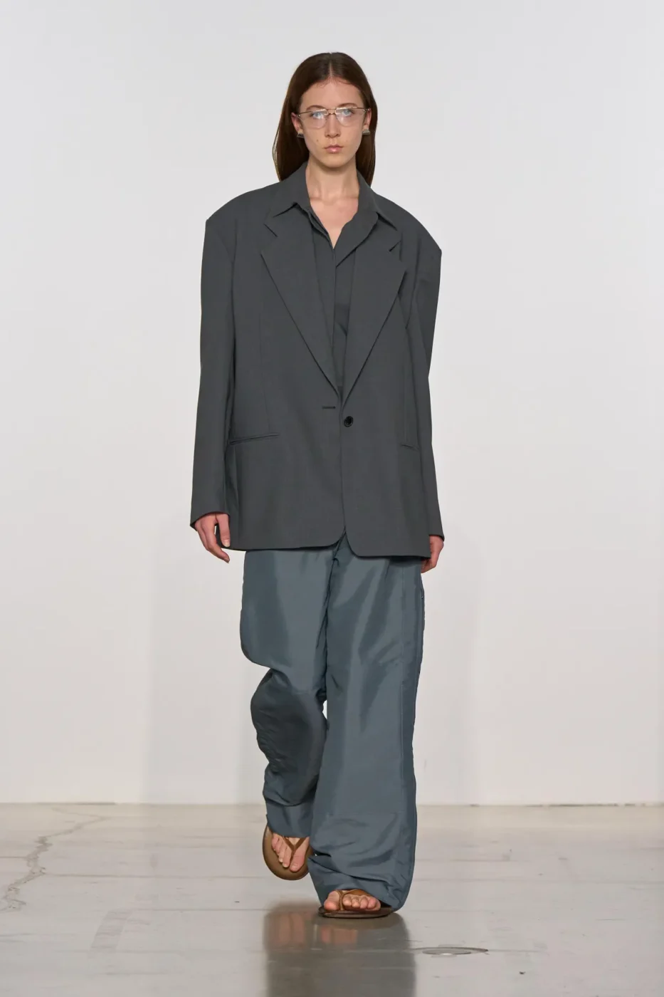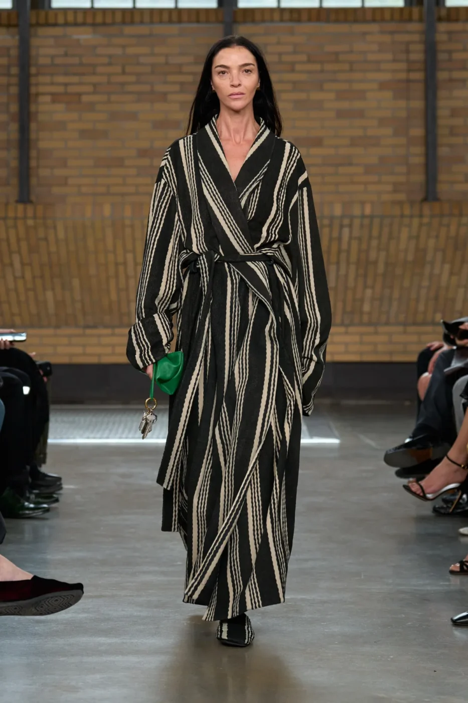 „Clothes for life” – tak Leoni określiła swoją wizję. To garderoba oparta na realnych potrzebach, ale ubrana w formę, która prowokuje. Na wybiegu widzieliśmy klasyki codzienności: trencze, jean jacket, szlafroki, blazery, caftany i pięciokieszeniowe spodnie. Wydawałoby się zwyczajnie, ale dopiero detale pokazały, że to Calvin Klein w wersji premium.