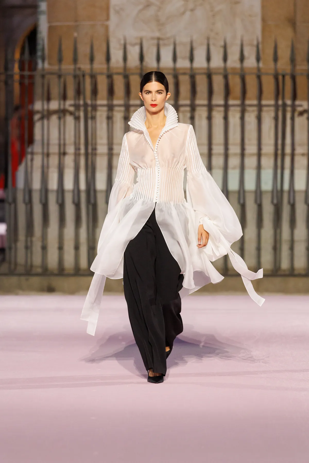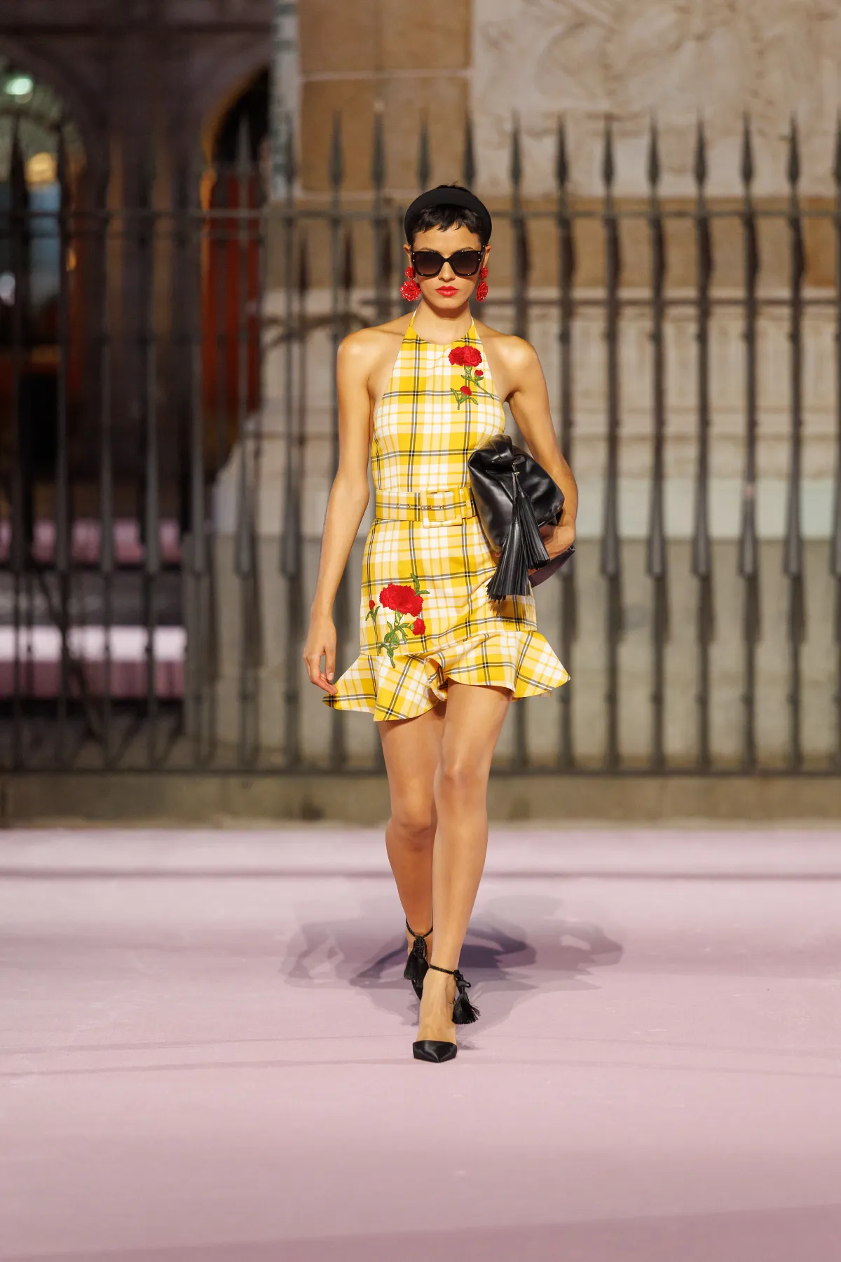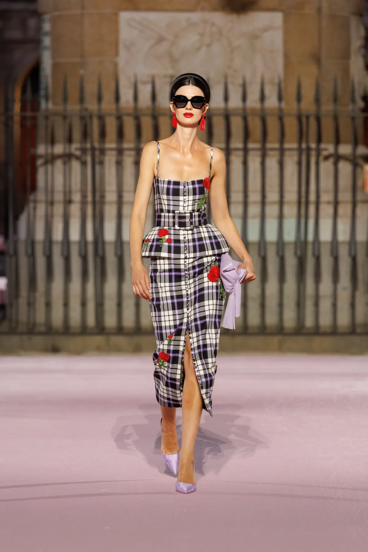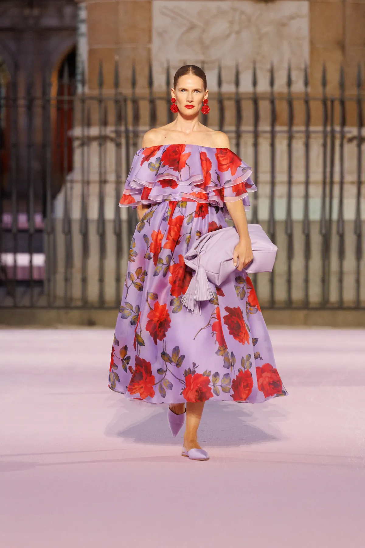 Paleta barw to prawdziwy teatr emocji – od szafranu, Herrera red i głębokiego Rioja, przez soczysty róż i fiolet, po biel i czerń. To zestawienia rodem z filmów Pedro Almodóvara, gdzie nieoczywiste połączenia wywołują niepokój i ekscytację. W centrum kolekcji znalazły się kwiaty – goździk, fiołek i róża z Retiro – każdy wpisany w tkaniny, hafty i trójwymiarowe aplikacje. To nie są przypadkowe wybory, ale symbole Madrytu, które Wes Gordon zamienił w kody elegancji.