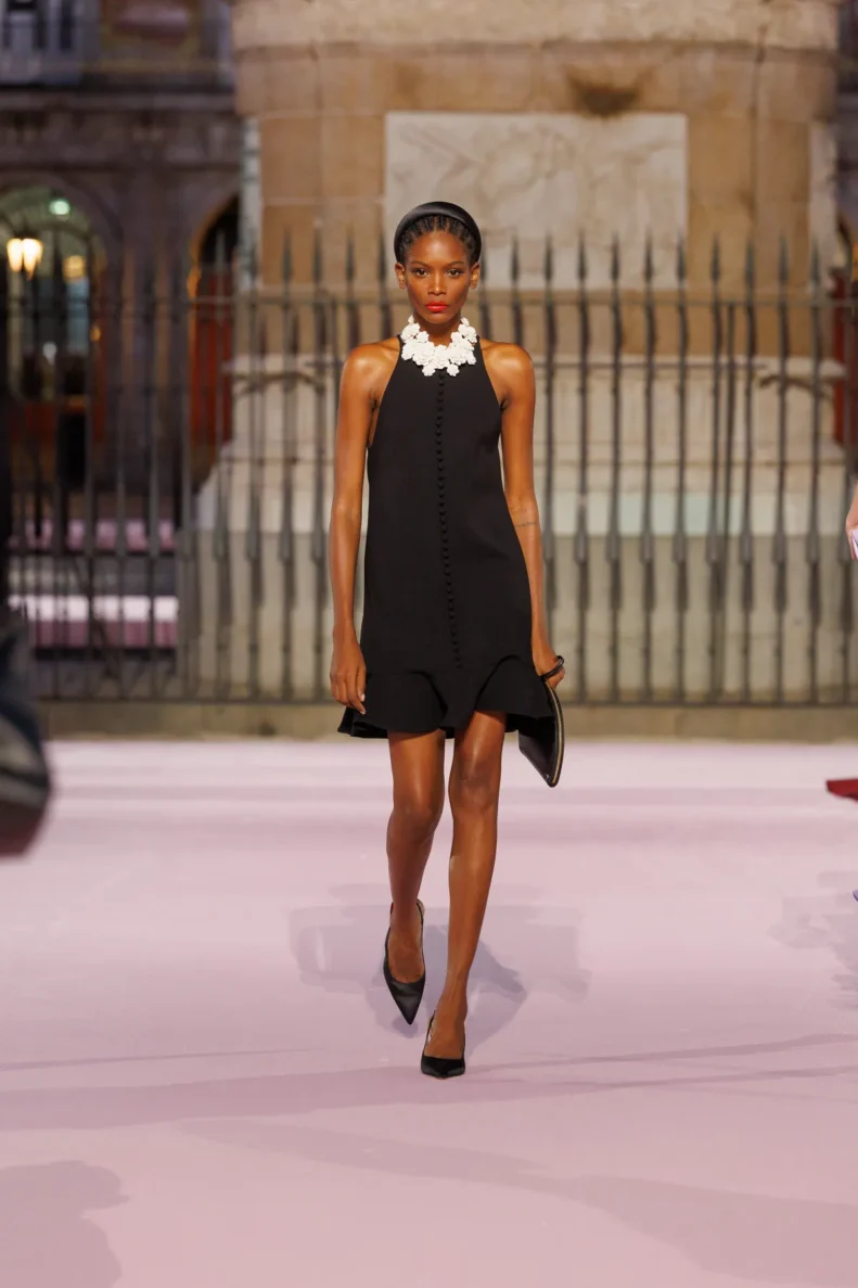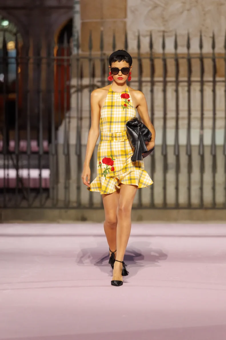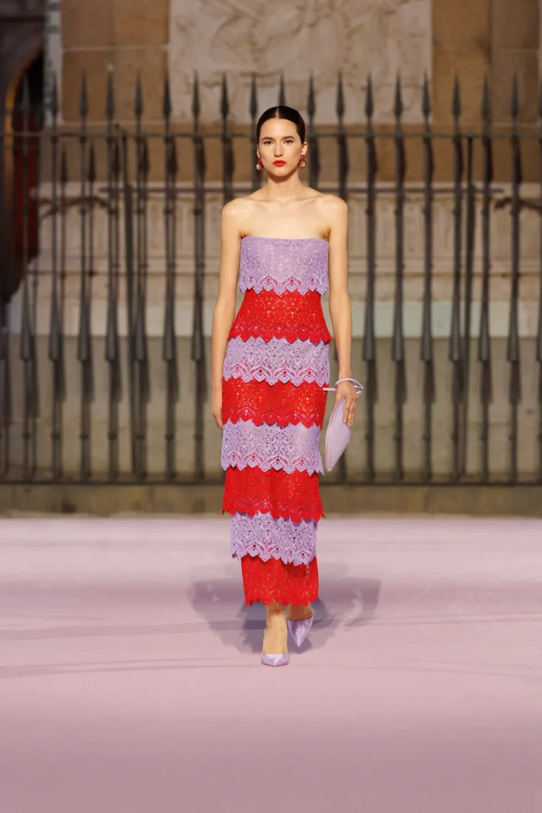 Carolina Herrera po raz pierwszy w historii zdecydowała się na pokaz głównej kolekcji poza Nowym Jorkiem – i to w jakim miejscu! Plaza Mayor w Madrycie stała się sceną dla wiosenno-letnich propozycji na 2026 rok. Wes Gordon, dyrektor kreatywny domu mody, postawił na opowieść o mieście, w którym łączy się barokowa przeszłość i wywrotowy duch lat 80., czyli czasów, kiedy powstała marka. To właśnie zderzenie historii i współczesności stworzyło pełen życia pokaz, który można czytać jak list miłosny do Madrytu.