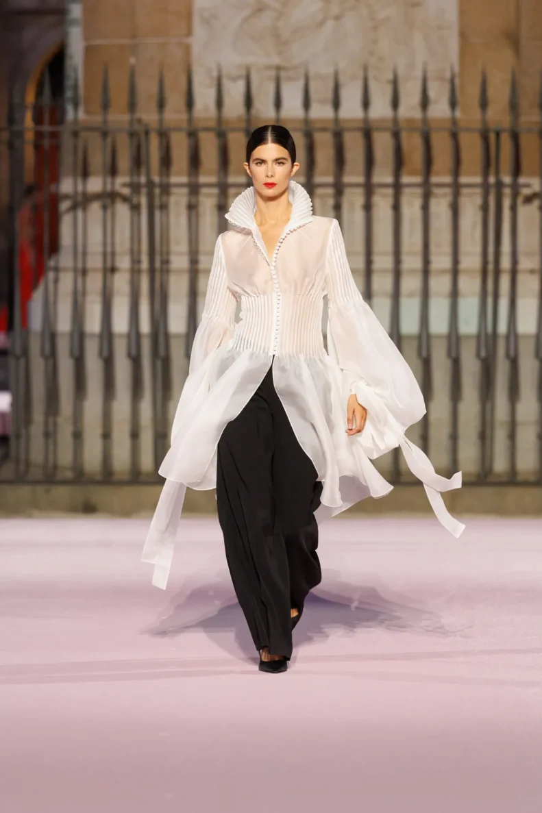 Pokaz wzbogaciły kolaboracje z najciekawszymi twórcami hiszpańskiej sceny. Sybilla nadała kolekcji rzeźbiarską poetykę, Palomo przeprojektował białą koszulę Herrery, Andres Gallardo stworzył porcelanowe biżuteryjne goździki, a Levens ozdobił sylwetki szklanymi kwiatami. Na wybiegu pojawiły się też płaszcze legendarnej Casa Seseña – marki, którą nosili Picasso czy Hemingway.