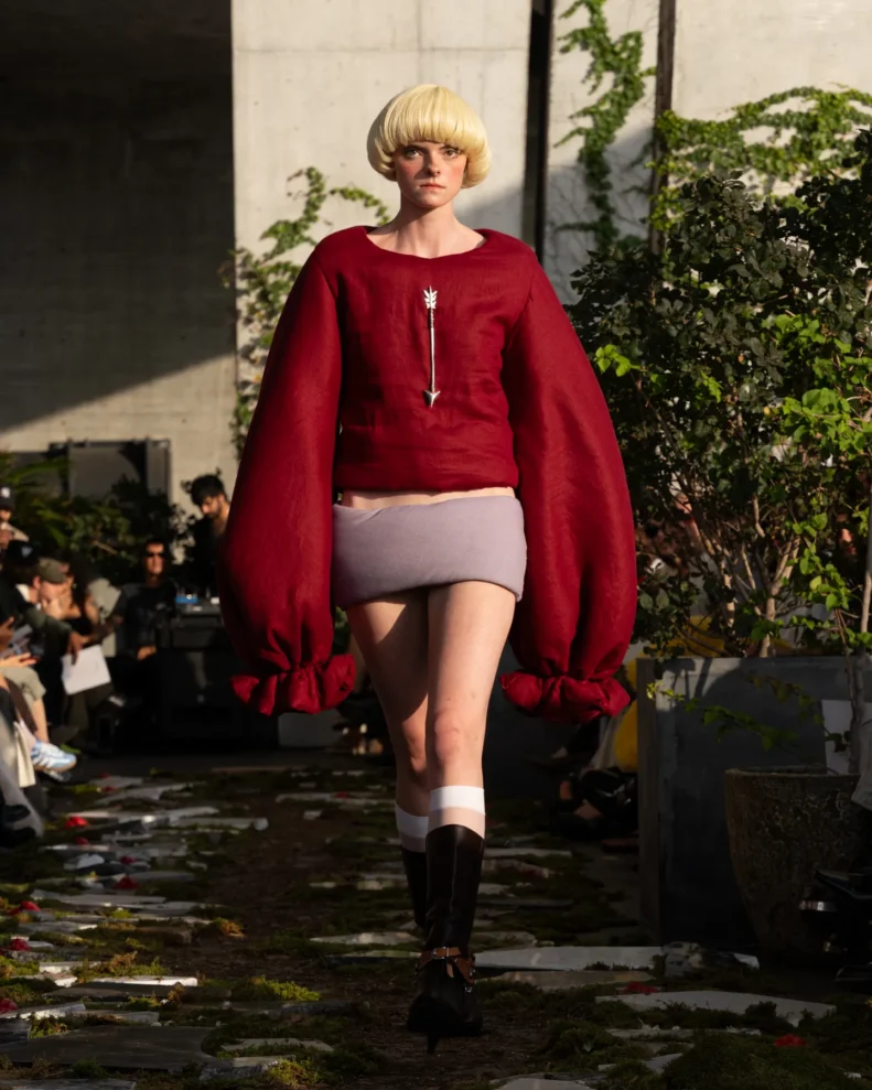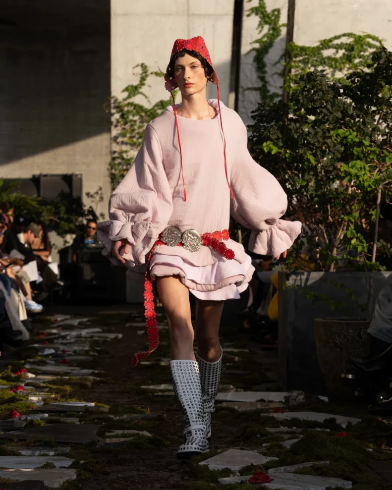 Kolekcja Pipenco Wiosna-Lato 2026 to pokaz, który udowadnia, że naiwność w modzie może być aktem odwagi. Projektantka Lorena Pipenco tym razem sięgnęła po inspirację z 1965 roku – rumuński film „De-a fi Harap Alb”. To baśniowa opowieść o najmłodszym księciu, którego wszyscy skazują na porażkę, a który zwycięża nie siłą ani sprytem, lecz dzięki dobroci, delikatności i trochę… szczęściu. Pipenco dostrzegła w tym bohaterze swoje własne odbicie jako projektantki funkcjonującej w brutalnym świecie mody, gdzie liczy się szybkość, pieniądz i produktywność, a nie fantazja czy piękno.