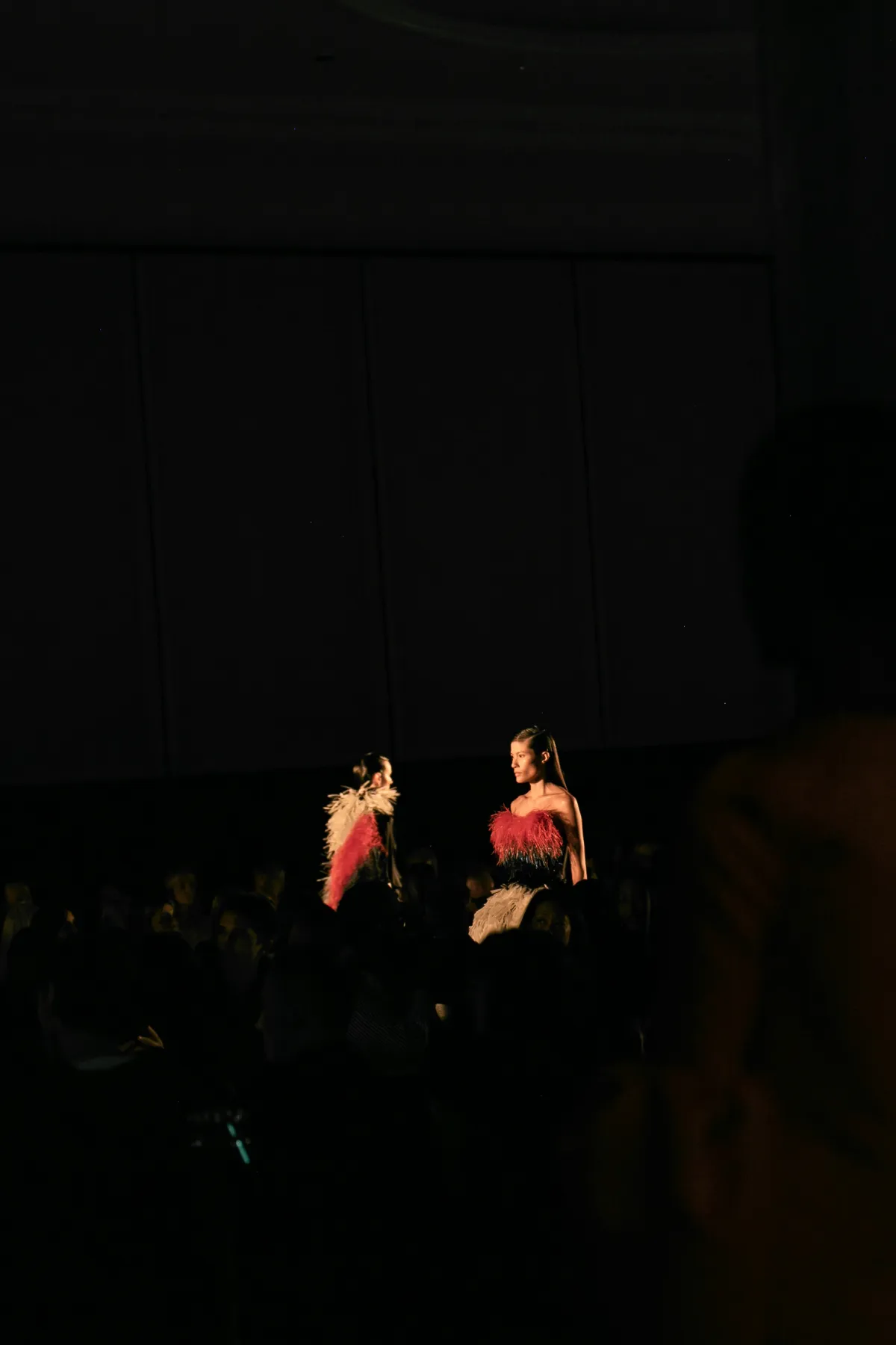 Kolekcja Wiosna-Lato 2026 nie jest prostym cytatem z twórczości Hepworth – to jej nowoczesne odczytanie. Projektantka sięga po techniki dekonstrukcji: cięcia, składania i redukcji, które przypominają charakterystyczne wycięcia w rzeźbach artystki. Dominują eksperymentalne materiały – od laserowo ciętego aksamitu, przez surowe rafie, po fil coupé – które nadają sylwetkom architektoniczny charakter. Industrialne spotyka tu organiczne, a ubrania zyskują niemal rzeźbiarską fakturę.