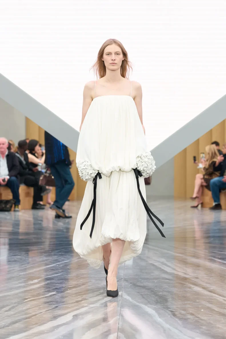 Scenografię przygotował Luca Guadagnino, co już samo w sobie mówi wiele o nastroju pokazu. Zamiast przepychu – kinowa introspekcja. Muzyka Frédérica Sancheza budowała atmosferę spokoju z niepokojem w tle, a makijaż Petera Philipsa i włosy Guido Palau podkreślały naturalność z artystycznym zacięciem. To nie była kolekcja, która krzyczy – raczej taka, która mówi szeptem, ale długo zostaje w głowie.