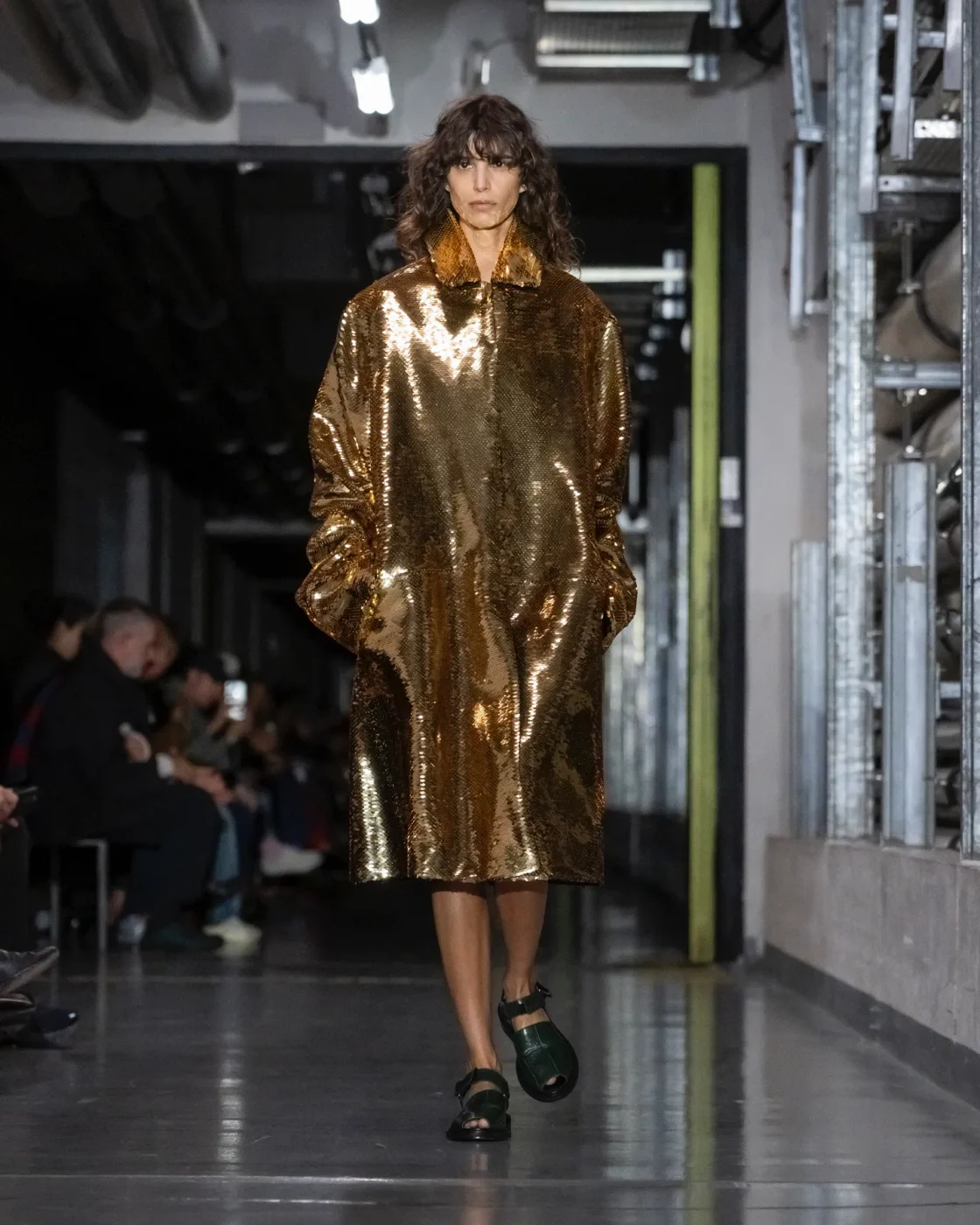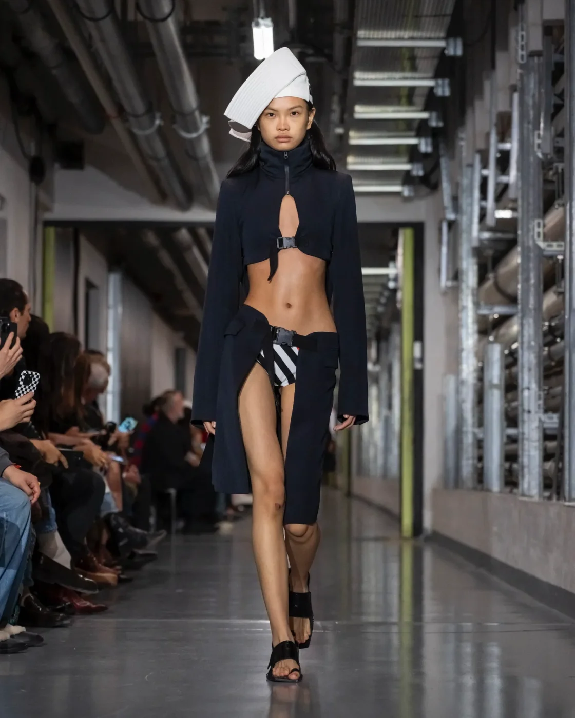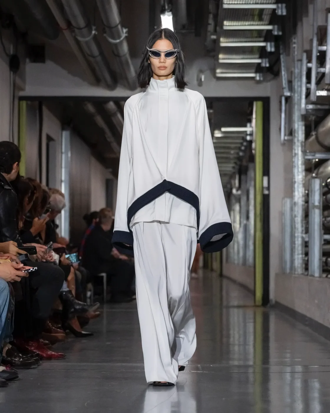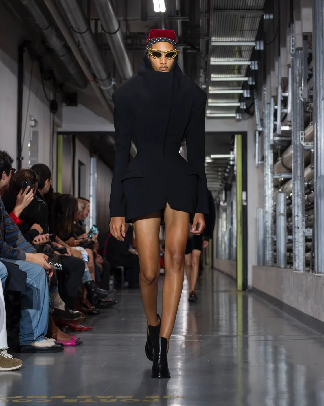 Pokaz w podziemiach Musée du Quai Branly w Paryżu był równie szalony jak sama kolekcja. Dysmorfia, przeskalowane ramiona, spódnice lecące w powietrze, tatuaże 3D, optyczne paski marynarskie i trompe l’oeil z nagim ciałem – to wszystko miało być memoriałem nowej energii Gaultiera. Skończyło się jednak na efekcie „za bardzo chcę być cool”. Lantink twierdzi, że nie robi moodboardów, tylko „czuje modę”. Czuć faktycznie – ale bardziej chaos niż wizję. To jakby spotkać Gaultiera z rave’u w Amsterdamie i kazać mu projektować po 48 godzinach bez snu. Czasem genialne, czasem żenujące, a czasem prowokacyjnie.