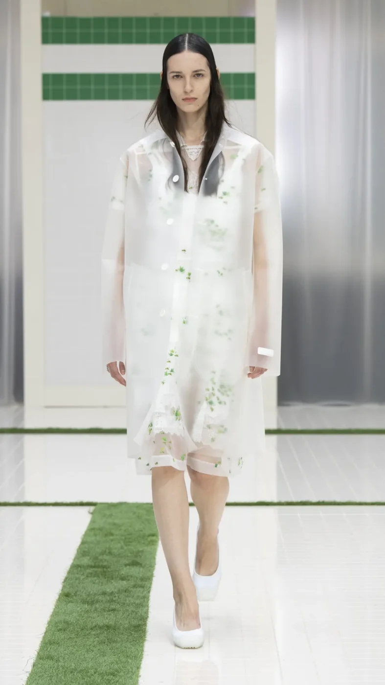 Pokaz odbył się w paryskim Lycée Carnot, w monumentalnej hali Hall Eiffel. Szklane tafle, prysznicowe zasłony i kafelki przywoływały atmosferę szatni René Lacoste’a. W tym „backstage’u sportu” granice między prywatnością a spektaklem całkowicie się rozmyły. To nie tylko scenografia – intymność i odwagi bycia nieperfekcyjnym.