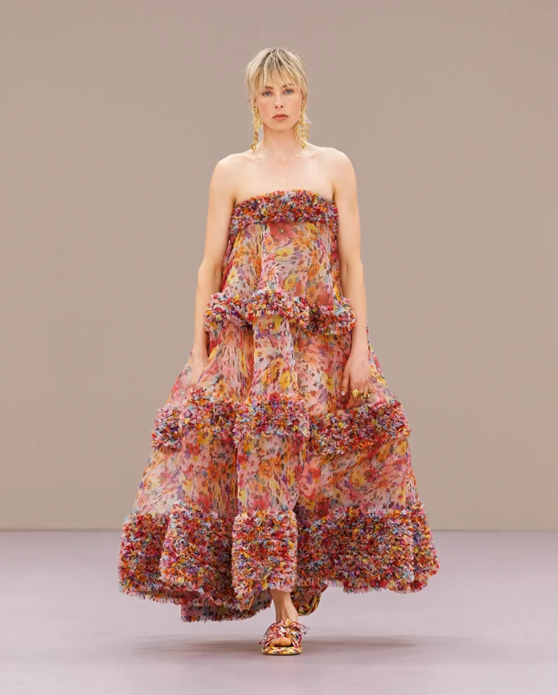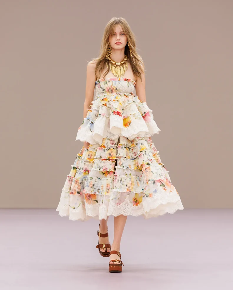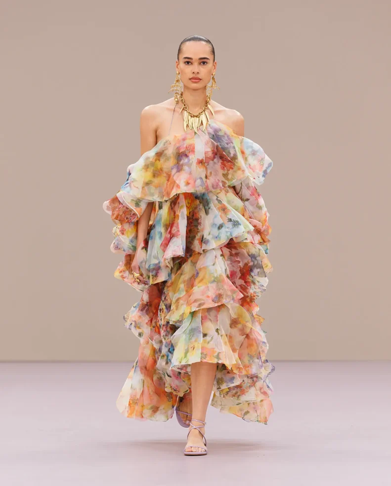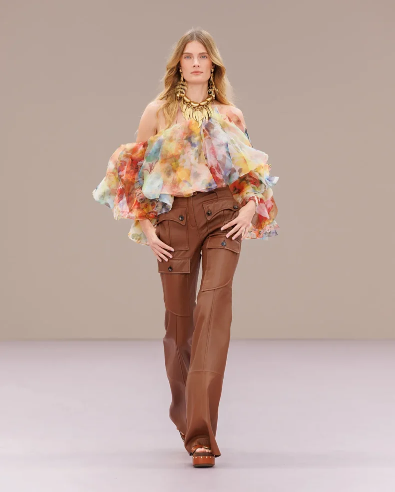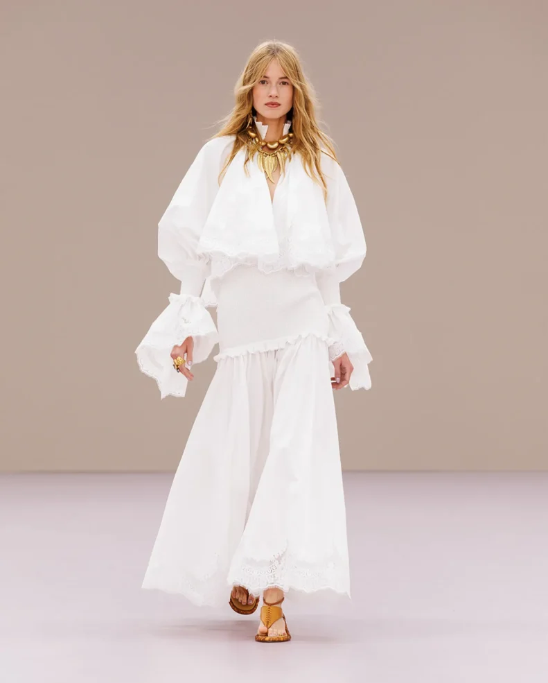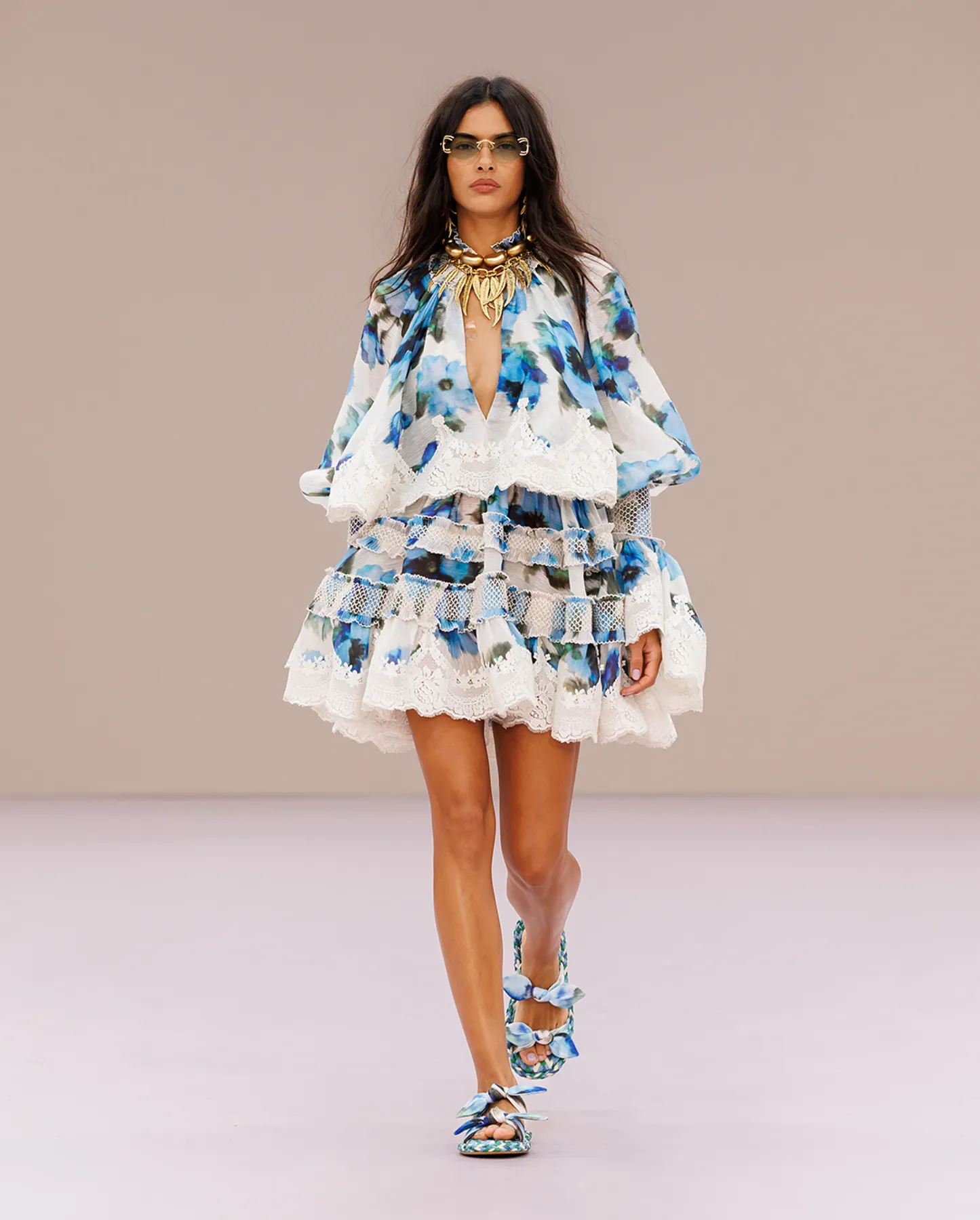 Kolekcja łączy lekkość australijskiego podejścia do mody z paryskim wyrafinowaniem. Widać to w detalach – od żakietów o perfekcyjnym kroju po romantyczne, falujące rękawy z organzy. Zimmermann konsekwentnie rozwija swój język wizualny, w którym kobiecość nie jest słabością, tylko siłą. To estetyka, która łączy romantyzm z nowoczesnością, i właśnie dlatego marka wciąż pozostaje w czołówce światowych pokazów.