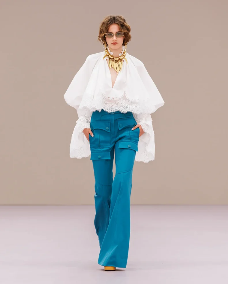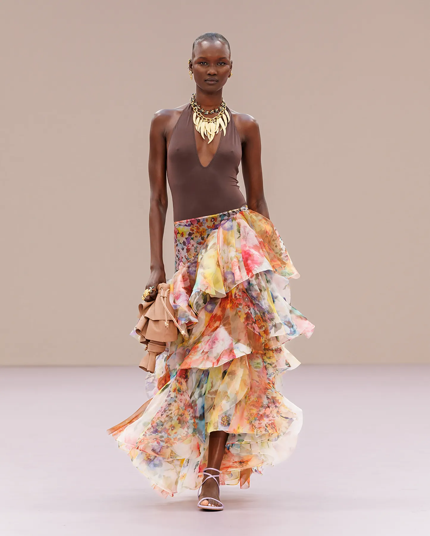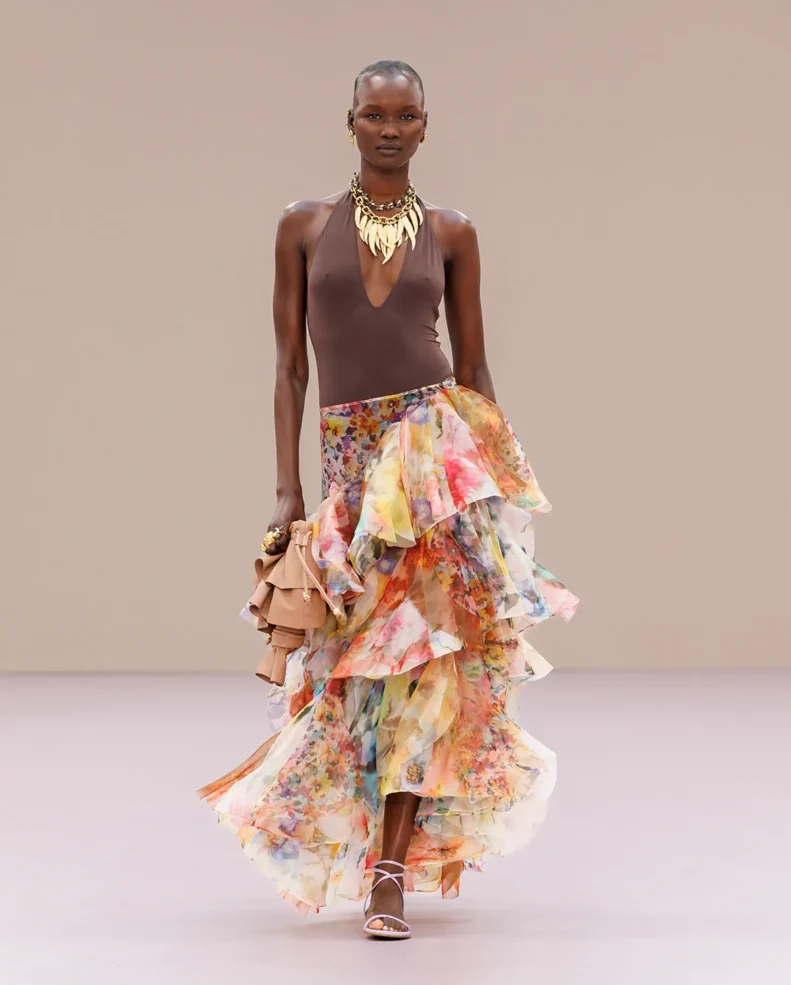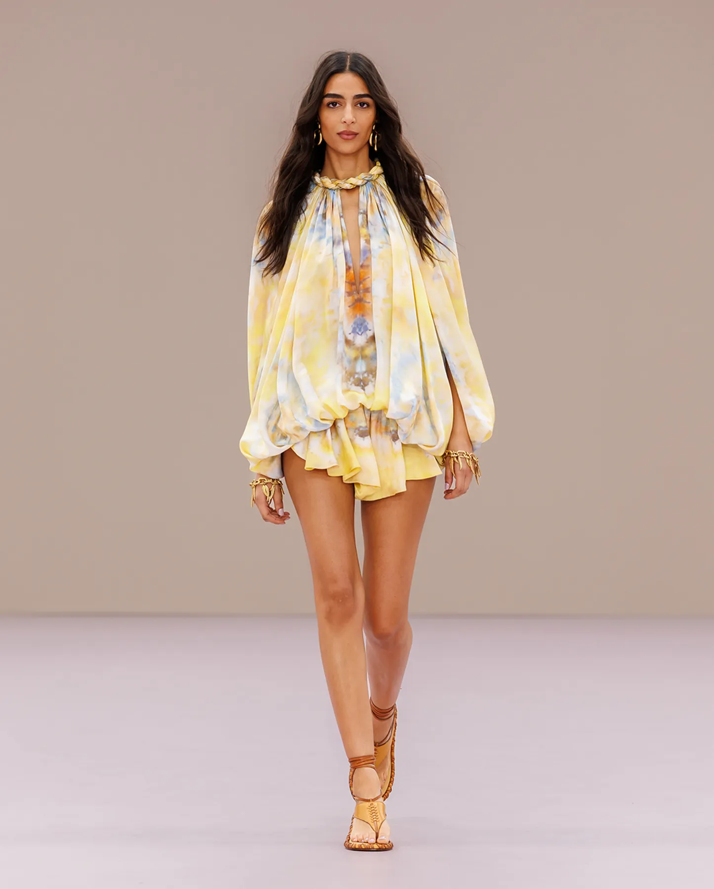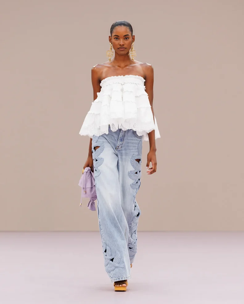Kolekcja łączy lekkość australijskiego podejścia do mody z paryskim wyrafinowaniem. Widać to w detalach – od żakietów o perfekcyjnym kroju po romantyczne, falujące rękawy z organzy. Zimmermann konsekwentnie rozwija swój język wizualny, w którym kobiecość nie jest słabością, tylko siłą. To estetyka, która łączy romantyzm z nowoczesnością, i właśnie dlatego marka wciąż pozostaje w czołówce światowych pokazów.