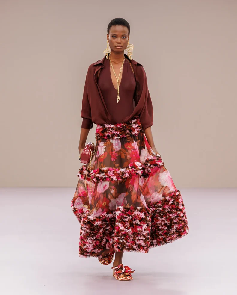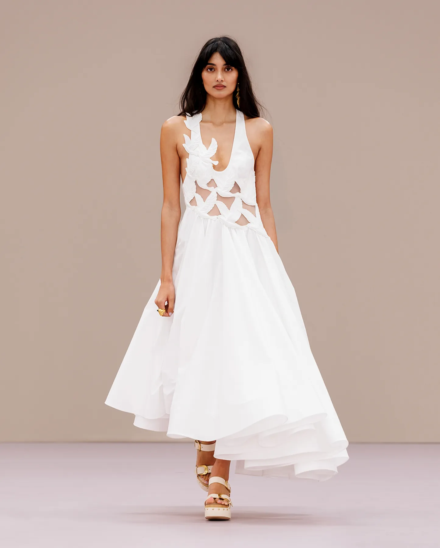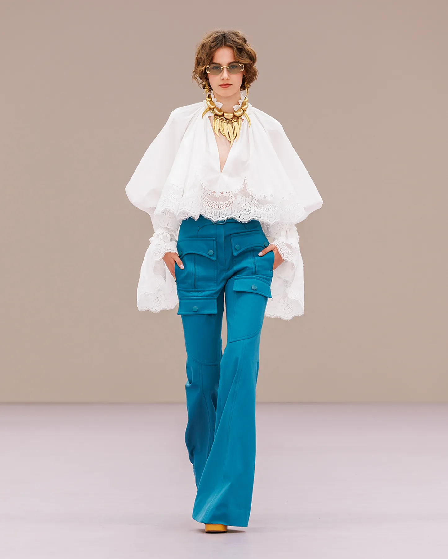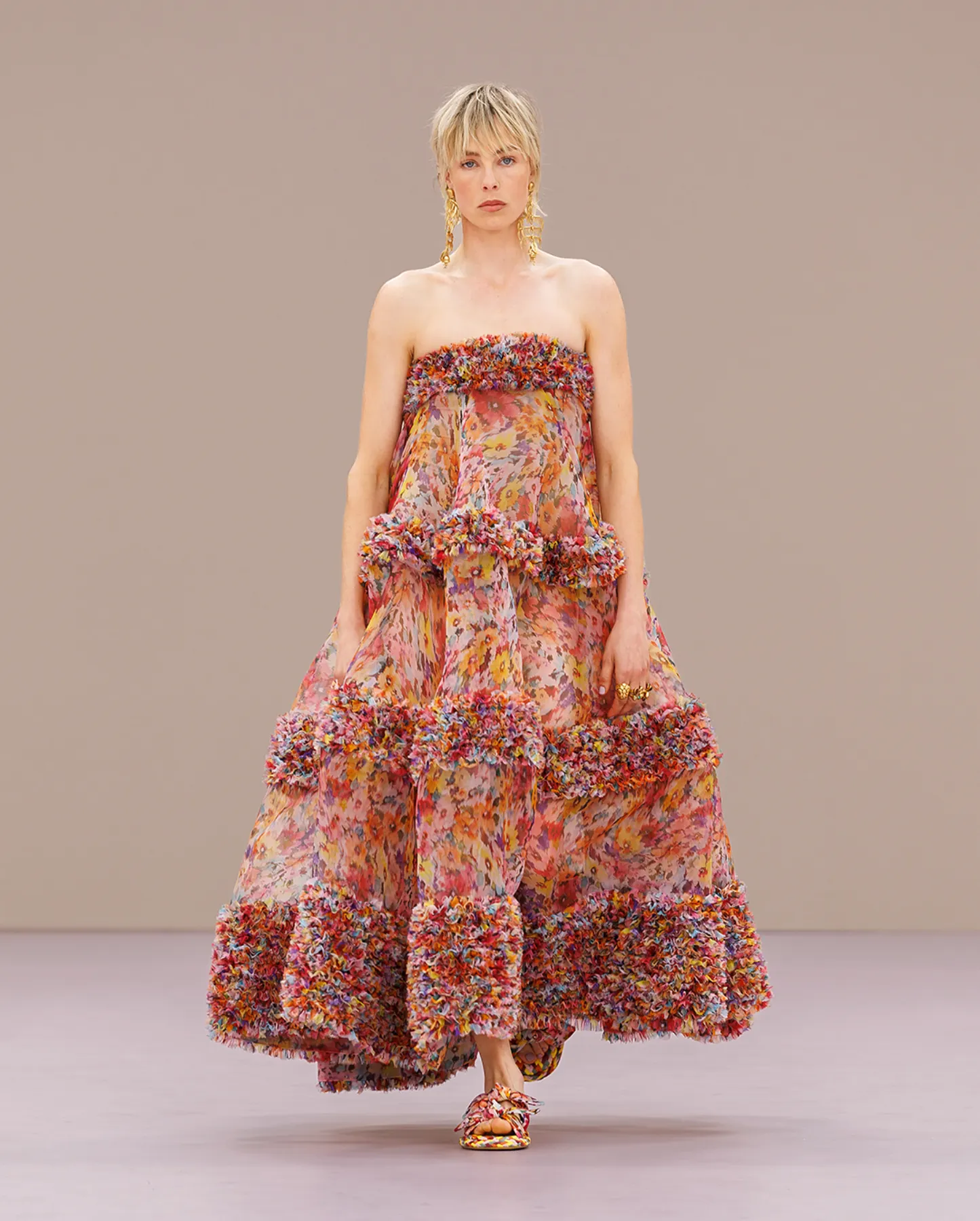 Kolekcja łączy lekkość australijskiego podejścia do mody z paryskim wyrafinowaniem. Widać to w detalach – od żakietów o perfekcyjnym kroju po romantyczne, falujące rękawy z organzy. Zimmermann konsekwentnie rozwija swój język wizualny, w którym kobiecość nie jest słabością, tylko siłą. To estetyka, która łączy romantyzm z nowoczesnością, i właśnie dlatego marka wciąż pozostaje w czołówce światowych pokazów.