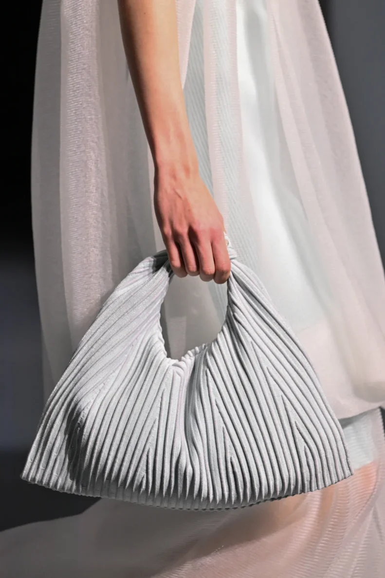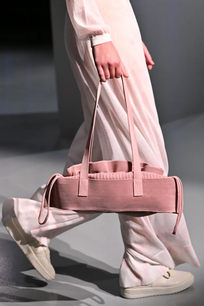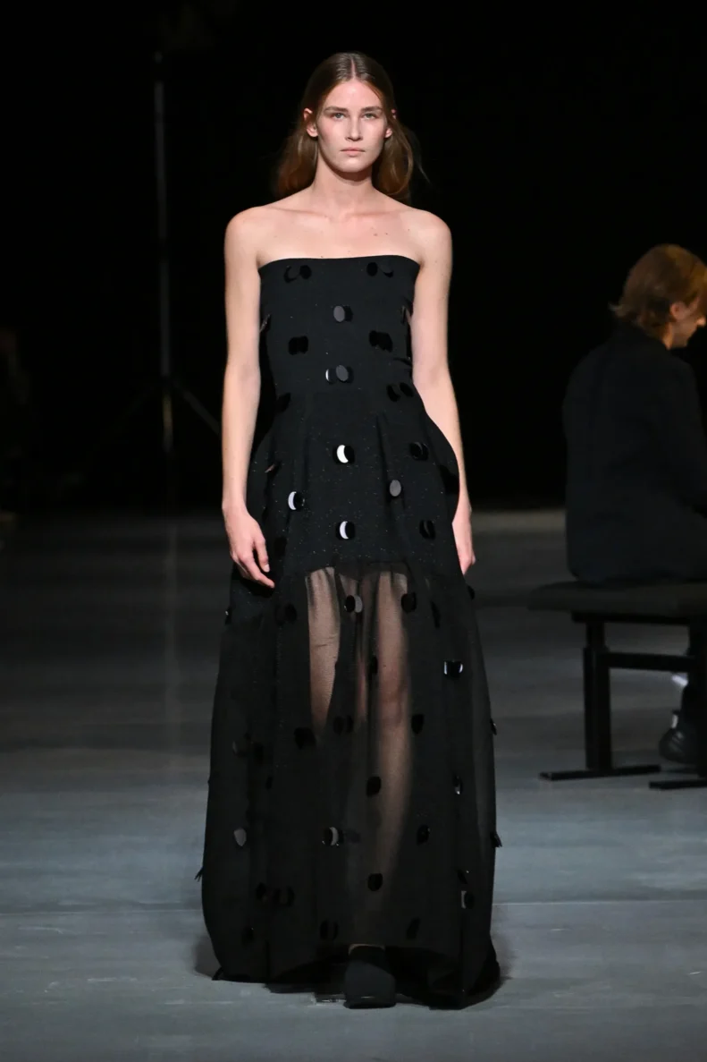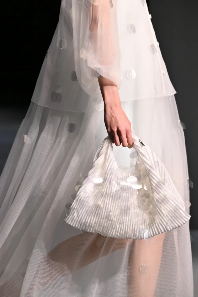 Najbardziej charakterystyczna dla CFCL seria POTTERY została w tej odsłonie przetworzona na transparentne sukienki inspirowane szkłem Émile’a Gallé i rzeźbami Mariko Mori. Delikatne, pastelowe tony mięty i szarości przenikały się z połyskiem przędzy, tworząc efekt delikatnego światła.