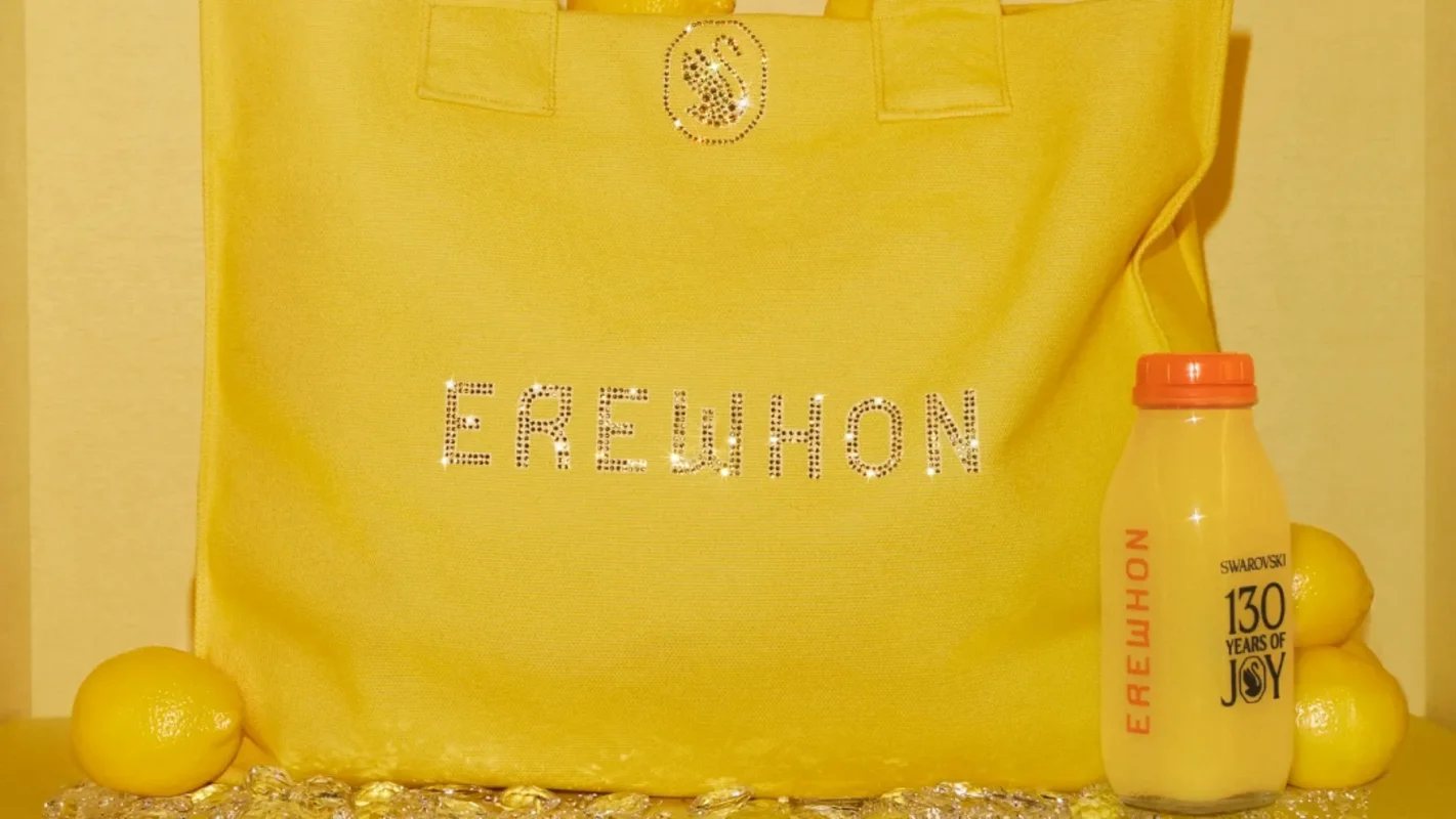 Efektem tej nieoczywistej kolaboracji jest sok Lemon 130 – mieszanka wellnessowych składników z dodatkiem symbolicznego „swarovskiego blasku” – oraz torba Swarovski x Erewhon z żółtej bawełny wysadzana kryształami. W skrócie: wellness z metką haute couture.