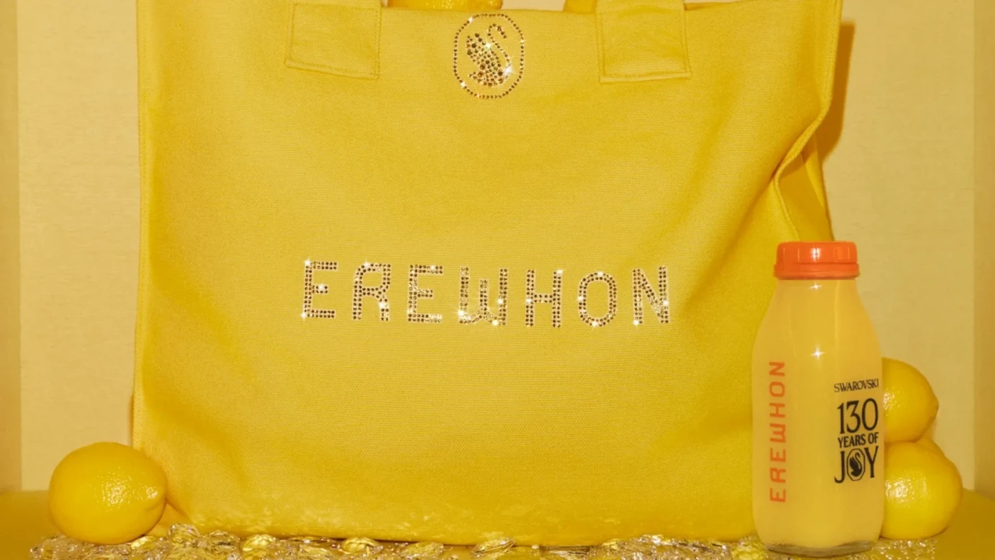 Efektem tej nieoczywistej kolaboracji jest sok Lemon 130 – mieszanka wellnessowych składników z dodatkiem symbolicznego „swarovskiego blasku” – oraz torba Swarovski x Erewhon z żółtej bawełny wysadzana kryształami. W skrócie: wellness z metką haute couture.