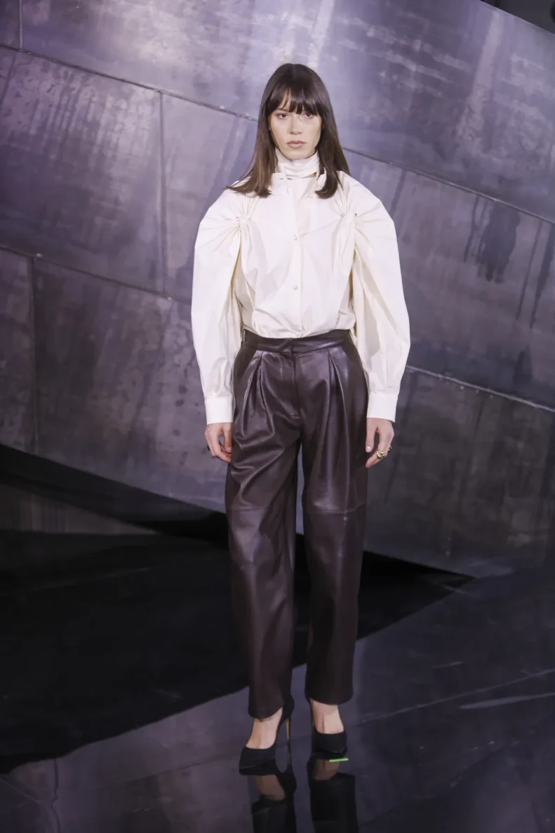 Niewiele było kontrastów czy mocnych akcentów kolorystycznych. Forma dominowała nad kolorem. Podejście to można odczytać jako decyzję o wzmocnieniu charakteru codziennego luksusu – moda, która ma być używana, a nie jednorazowo prezentowana na okazję.