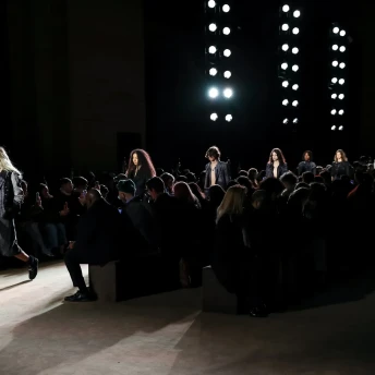 Paleta opiera się na neutralnych tonach – beżach, bieli i czerni. Kolor pojawia się punktowo, głównie w czerwieni, która buduje mocniejsze akcenty w stylizacjach. To ograniczenie koloru pozwala skupić uwagę na konstrukcji i materiale.